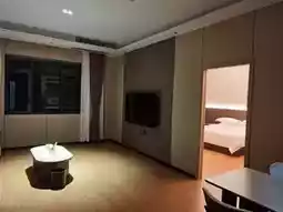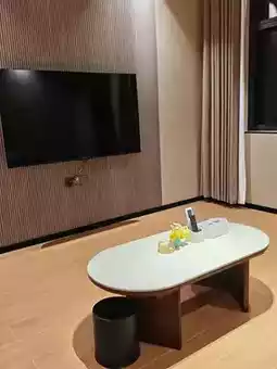 - Public Area Details: The striped feature wall in the living room plus the large TV is very stylish. The small floral arrangement and tea set on the oval coffee table instantly add a touch of light luxury; pull the floor-to-ceiling curtains and privacy is maximized. Whether binge-watching shows or hanging out with friends, it’s super comfortable!