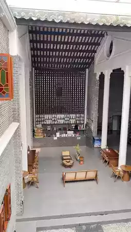 The homestay was originally the historic Lichunwei village complex from the Republic of China era, preserving the rammed earth exterior walls of the diaolou and ancestral halls intact. Walking into the lobby, you can see weathered brick walls and old photos. My favorite is the century-old longan tree in the courtyard; sipping a cup of aged tangerine peel Pu’er tea under its shade makes time seem to slow down~For photos, I recommend these spots: