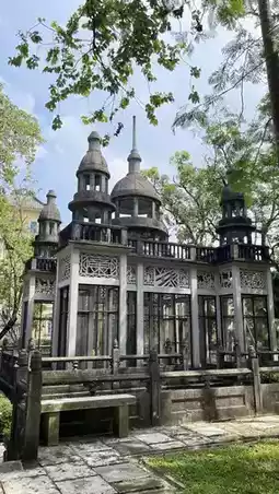 The garden consists of two parts: the "Small Garden" and the "Large Garden," with a brilliant layout described as "a garden within a garden, a scene within a scene." Youāll see winding canals flowing through, with iconic "Rainbow Bridge" and "Evening Fragrance Pavilion" built over the water. The small bridges, flowing water, corridors, and pavilions complement each other beautifully. However, the most eye-catching feature is the uniquely styled, exotic "Flower Vine Pavilion." This entirely Western-style building is cleverly placed within the Chinese garden, not clashing but rather serving as a highlight, strongly reflecting the owner Mr. Xie Weiliās inclusive aesthetic taste.