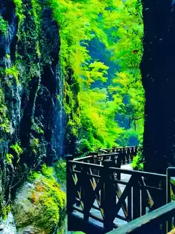 Walk the cliff-hugging plank roads with vertical rock faces on one side and deep emerald valleys on the other. Along the way, encounter over 10 waterfalls like "Celestial Fairy" and "Golden Bell Falls," their mist cooling your skin. At the "Glowworm Rock" section during rainy season, you might spot fireflies at dusk, like stars scattered across the cliffs.