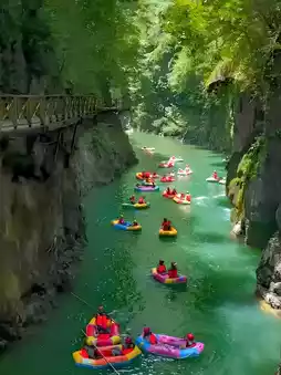 Guizhou’s "wildest rafting" is no exaggeration! The 8-kilometer route features whirlpools that spin your raft 360° and calm "jade-green zones" where you can spot macaques leaping through trees. The moment waves hit your face, all the summer heat washes away—just hold tight to your paddle, as a spontaneous water battle with fellow rafters might break out!