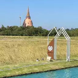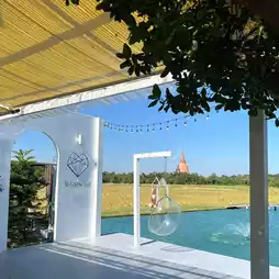 Escape the heat of the city and come sit and sip coffee in the middle of a rice field? 💚 "Jai Klang Na Cafe" is a super chill cafe with a million-dollar view, with a heart-shaped pond and a view of the pagoda behind it. The atmosphere is great. There are both indoor / outdoor zones with plenty of photo spots. 📸✨