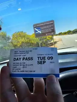 Youâll need a day pass to explore Kalbarri National Park. Thereâs a little building as you drive in, but even if it looks deserted, thereâs a ticket machine outside. Daily pass cost was AUD17 per car, and itâs totally cashless (slide your card, grab your ticket, and slap it on your dashboard). Easy peasy!