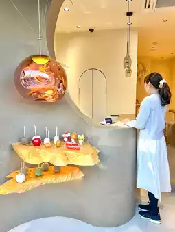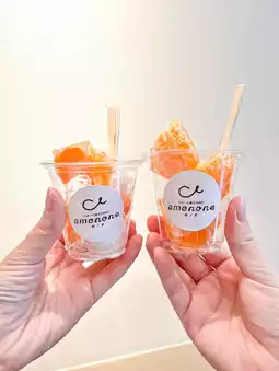 Today, we will introduce "Fruit Candy STAND amenone" where you can eat sweets that look like jewels 💎🍎✨️ Located in a convenient location about 10 minutes walk from Kamakura Station, the shop is marked by a stylish light bulb that looks like a large candy apple 🍓 In the calm atmosphere of the shop based on white, you can enjoy jewel-like fruit candy 🍭 The fruits carefully selected for each season at the market every morning are covered in 1.6mm-thick candy, making this beautiful candy that can be called artistic. The collaboration of the crunchy texture of the candy and the firm fruit is exquisite ✨️ In addition to apples from Aomori Prefecture and cute-looking strawberries, we were able to enjoy kiwi fruit and mandarin orange candy this season 🍊 If you want to enjoy the taste of the ingredients themselves, we recommend the plain flavor, and if you want to be greedy and enjoy one more flavor, we recommend choosing your favorite from amenone's original flavors seasoned with tea, cocoa, etc.! My favorites were the Kinu Hojicha candy apple and the Yogurt flavored mandarin candy 🩷 Both flavors bring out the deliciousness of the fruit, and I want to come back to eat them again 👏 They also have a full menu of drinks such as tea and coffee to wash down the sweet candy, so please try ordering those as well 🫖