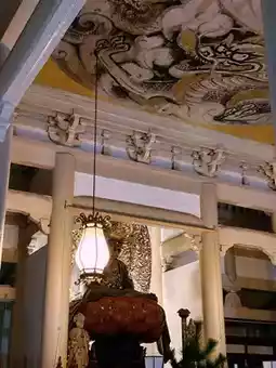I meditated for a while before my usual yoga in the two contrasting atmospheres of the Kojirin and Butsuden halls, which are open regardless of the day or time of the Zen meditation meeting, and was grateful to find Song Dynasty culture in the dragon ceiling painting in the Butsuden hall, the golden beauty of the principal image, and the footwear of the monks, before heading home.