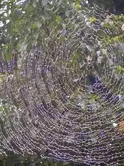 It started to rain on the way, and a series of large spider webs appeared, wet with rain and dew. Akutagawa Ryunosuke's "The Spider's Thread" is a moral novel that teaches the importance of altruism, but when you look at the strength of the threads and the functional metallic beauty of the independent orb spider's web, you can also project the ideal of an independent life in which one can choose one's own place to live, eat one's own food, and spin a web with one's own efforts.