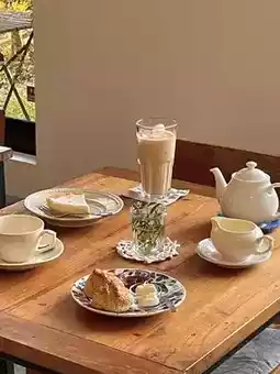 The cafe's signature scones are made with plenty of butter, making them crispy on the outside and fluffy on the inside. They were delicious🩵 The cheesecake was also rich and tasty.. I enjoyed it with some delicious tea, and it was a blissful time☕️