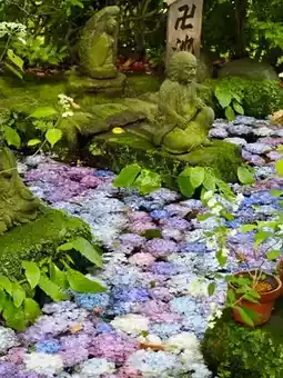 Highlights: 2,500 blue hydrangeas forming a "flower tunnel", stunning framed views through the "Window of Enlightenment"