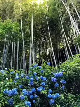 Meigetsu-in Temple in Kamakura, famously known as the "Hydrangea Temple," offers a breathtaking sight with its pathway covered in blue hydrangeas, creating an otherworldly atmosphere. While the peak blooming season can be crowded, visiting early in the morning allows you to enjoy the serene beauty without the crowds. The garden view through the round window and the moss-covered temple grounds are equally stunning, making it a must-visit spot for photography enthusiasts. Immerse yourself in the harmony of hydrangeas and traditional Japanese aesthetics.