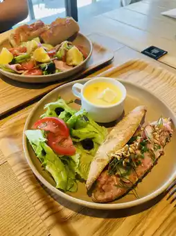 Behind it, there is a cafe restaurant that is popular for its stylish lunch plates with delicious bread and soup🍽️