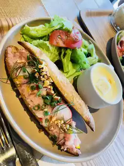 - Tuna tartare sandwich with truffle-scented mayonnaise sauce mixed with paprika🥖