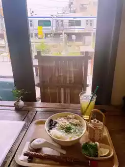 Kanagawa/Kamakura: A restaurant with Southeast Asian cuisine and train views