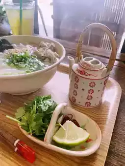 The light-flavored pho was delicious, especially when topped with cilantro, squeezed lime, and fish sauce for a refreshing taste!