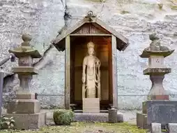 Further into the temple grounds, you'll find a small cave carved into a cliff. Inside, stone Buddha statues are enshrined, and the light filtering through creates a mystical ambiance, offering a unique experience.