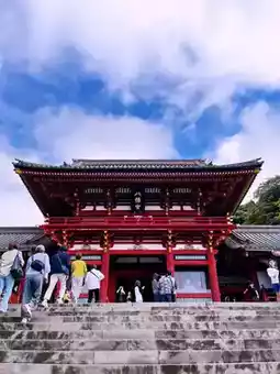 If you love the charm of ancient Japan combined with a touch of modern vibes and impeccable fashion, this is the place for you! The long tree-lined pathway is stunning, ensuring perfect lighting for your photos 📸. The shrine itself stands majestically, with stone steps that are ideal for striking cool poses. Pair a haori or vintage-style outfit for photos that truly capture the essence 🍃.