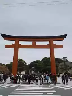 Finish the trip by stopping by Tsurugaoka Hachimangu Shrine, walk through Komachi Dori Street, full of cafes, cute food, and handmade shops 🍡✨