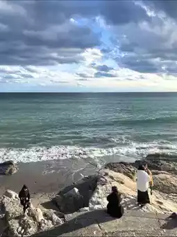 - Shichirigahama Beach was our last stop to watch the sunset before heading back to Tokyo. What's special about this beach is its black color. It's a natural black color, and it's beautiful in its own way. You can even see Mount Fuji from here. Unfortunately, the sky was overcast on the day we went, which was a real shame. It was still a beautiful view.