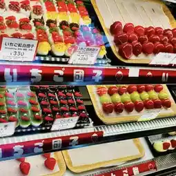 Enjoy colorful and visually stunning Japanese sweets, like strawberry candy and strawberry-topped rice dumplings. 🍓