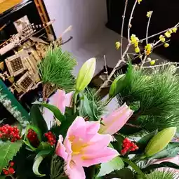 I started at Keikyu Zushi-Hayama Station. There was a local florist in front of the station, where I purchased New Year's decorations to welcome the new year. The red of the bamboo, pine, and mizuhiki strings stood out beautifully. Even though they were small decorations, just carrying them around instantly put me in New Year's mode.