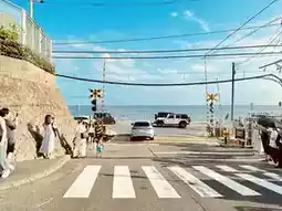 Kamakura Kokomae Station (Sakuragi Hanamichi Crossing) is located in Kamakura City, Kanagawa Prefecture, and is one of the most famous photo spots along the Enoden line. It gained fame due to the iconic scene in the classic manga "Slam Dunk," where Sakuragi Hanamichi and Akagi Haruko meet at the crossing, earning it the nickname "Sacred Ground" among fans. Situated near the Shonan Coast, the train leisurely passes by against the backdrop of the blue sky and ocean, creating a scene reminiscent of the anime, making visitors feel as if they are part of a youthful storyline. Despite being a simple railway crossing, its story and stunning scenery attract a large number of visitors daily. Whether you're an anime fan or a traveler seeking the romantic Shonan vibe, the atmosphere here is sure to captivate you.