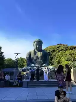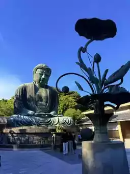 Standing over 13 meters tall and weighing 93 tons, this bronze statue is the second tallest Buddha in Japan, just slightly shorter than the one in Nara's Todai-ji Temple. Historical records indicate that it was first constructed in 1252 during the Kamakura period. Originally housed within a temple hall, a massive earthquake and tsunami during the Muromachi period destroyed the structure, leaving the Buddha exposed to the elements, thus transforming it into the open-air statue we see today.