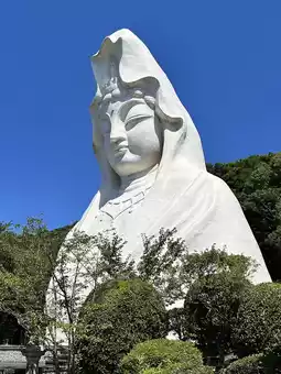 Towering over Ofuna, Kamakura City's Ofuna Kannon Temple, its symbol is a chalk-white Kannon statue approximately 25 meters tall. Visible from JR trains, the imposing statue is truly impressive, and the grounds offer a tranquil, peaceful atmosphere. Couples visiting are sure to find peace and tranquility, forgetting the hustle and bustle of the city. The statue is lit up at night, creating a truly magical sight.