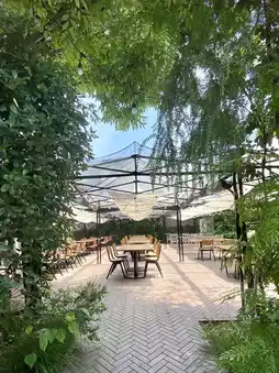 Tucked away in a quiet corner of Yuigahama, just a short walk from the sea, THE TABLE is the in-house restaurant of BIRD HOTEL—a tranquil hotel project by the creators of Kamakura’s beloved GARDEN HOUSE. Surrounded by lush greenery, the entrance path feels like a hidden garden, and the open terrace makes it all the more inviting.