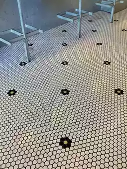 The interior is beautifully curated, with soft tones and a floor covered in pretty floral tiles that immediately caught my eye. It’s the kind of café where time slows down, and every detail feels thoughtful.