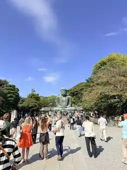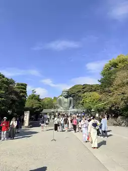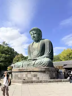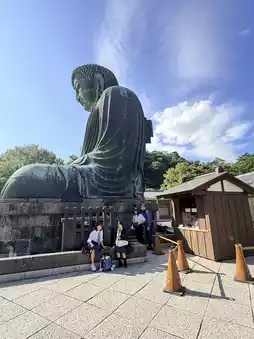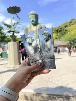 A prominent symbol of Kamakura, enshrined at Kotoku-in Temple in Kamakura, Kanagawa Prefecture, it is the second-largest Buddha in Japan, after the Great Buddha of Dotaiji Temple in Nara and Kyoto. It is a popular tourist attraction for both international and Japanese tourists. It is a designated National Treasure. You can enter the Great Buddha's interior, behind the Buddha statue, for an additional 50 yen. There is a popular ice cream shop at the entrance, highly recommended for its delicious ice cream. A cone is only 700 yen.