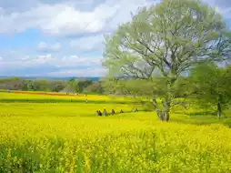 The rape blossoms look like a carpet.