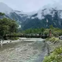 This iconic light wooden bridge stretches across the crystal-clear turquoise waters of the Azusa River. The stunning backdrop features the snow-capped Mount Hotaka (depending on the season), creating a breathtaking scene. This area serves as the central hub of Kamikochi, with souvenir shops, restaurants, and cafes where you can relax and enjoy a cup of coffee.