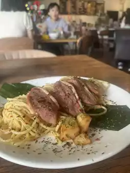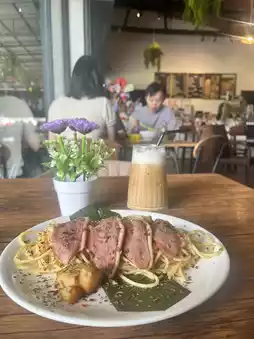 What makes this fusion spot truly special is its menu—a glorious collision of cultures. For the local palate, there’s the ever-comforting pan mee, fragrant curry mee, and slurp-worthy laksa, best paired with a creamy white coffee. For those in the mood for something a little more continental, the café-style offerings don’t disappoint: spaghetti, chicken chop, and barista-brewed coffees like mocha and cappuccino.