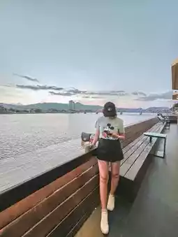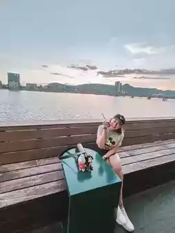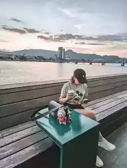 I went in the late afternoon just to chill, and I’m so glad I stayed for sunset 🌇. The view from the upper floor terrace? Chef’s kiss 💋. You get this gorgeous riverside breeze, soft golden light hitting the water, and the mountains glowing in the distance. Iced coffee in hand, legs stretched out — total peace 🧋✨.
