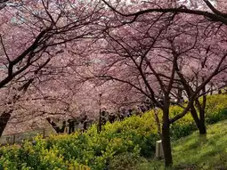 This location is famous for its Kawazu-zakura cherry blossoms, which bloom about a month earlier than those in Tokyo 💕. The best time to visit is from late February to early March. The vibrant pink blossoms set against the backdrop of Mount Fuji create a postcard-perfect scene that feels almost surreal 🗻✨.