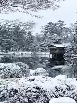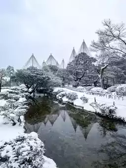 When I went on a trip to Kanazawa, it just happened to snow, so I went to the snowy Kenrokuen Garden