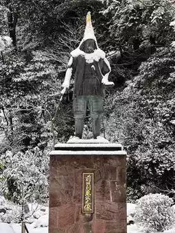 The bronze statue of Maeda Toshiie was covered in snow in a nice way