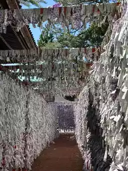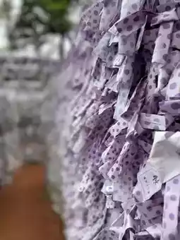 Next to the main hall is a tunnel hung with polka-dot fortune slips