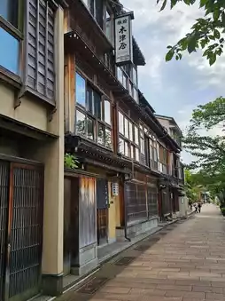 Kanazawa's "Kaimemachi Teahouse Street" seems to have gone back to the Edo period. Unlike the popular "Higashi Chaya Street", it is not as noisy and bustling as this place. Instead, it is more peaceful and elegant. Along the banks of the Asano River, wooden lattice windows and reddish-brown facades are lined up in order. It is one of the most well-preserved teahouse streets in Kanazawa.