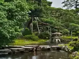 Kenrokuen, the famous garden in Kanazawa, Japan, is home to the legendary "Kotoji Lantern." This stone lantern, resembling a bridge with its two legs firmly planted, stands quietly by the Kasumigaike Pond and is one of the most iconic features of Kenrokuen. The name "Kotoji" is said to be derived from the decorative parts of the front wheels of traditional ox carts, giving it a unique and elegant historical charm.