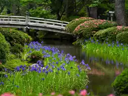 - **Flying Geese Bridge** (Gankou-bashi) made of 11 red stones