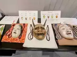 Noh masks are displayed on the first floor, where you can try on masks and Noh costumes and take photos. The second floor is a special exhibition room where photos are not allowed. The third floor is only used for workspace activities such as photography talk events, photography poems, and Noh mask making experiences.