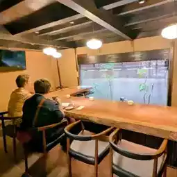 The café space is not large, but the first thing that catches your eye is a long, beautiful L-shaped wooden counter. If it's made of Hinoki wood, then it's truly valuable! The enthusiastic staff brought life to the wabi-sabi ambiance of the space. Travel photos always make for the best conversation starters.
