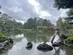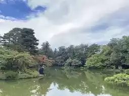 Finally, Long Ge arrived at #Kenrokuen. Thankfully, the weather was perfect, with abundant sunshine. Kenrokuen is typically a popular destination for cherry blossom viewing, but Long Ge's autumn visit offered a unique experience. Although it wasn't yet fall foliage season, the harmonious harmony of the lake, foliage, and waterfalls, coupled with the favorable weather, made the scenery truly breathtaking.
