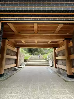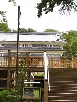 Kanazawa Castle Stone Gate seen from the entrance to Kenrokuen Garden