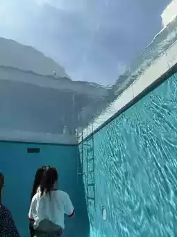 When visiting Kanazawa, I highly recommend making a stop at the 21st Century Museum of Contemporary Art. The highlight for me was the famous "Swimming Pool." From a distance, it looks like a regular blue pool where someone might actually dive in for a swim. But once you step inside the museum, you'll discover that you can walk "underwater"! Looking up, you can see the rippling water and people above, while they can see you too. The whole experience feels like you're breathing underwater—it's absolutely fascinating and perfect for photos.