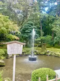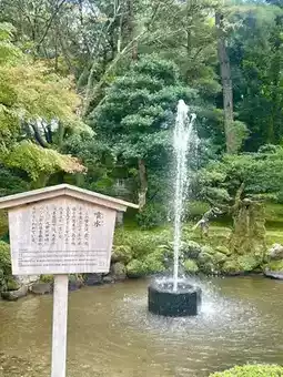 This fountain uses the natural pressure of Lake Kasumigaike to create a spring of water. The fountain is 3.5 meters high, reaching the same height as the pond.