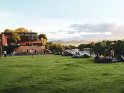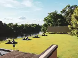 Din Cafe is a luxurious cafe that offers a relaxing experience amidst beautiful and peaceful nature. 🌳✨ It is located on the banks of the Kwai River in Kanchanaburi Province. It offers panoramic views of the river and mountains that make you feel like you have escaped from the hustle and bustle of everyday life.