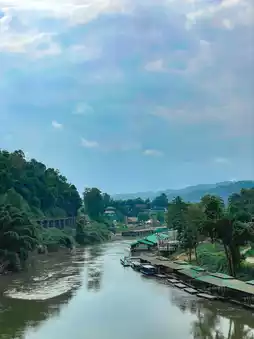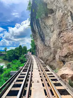 * The railway line runs along the cliffs parallel to the Kwai Noi River, allowing passengers to enjoy the beautiful scenery of the river, mountains, and forests.