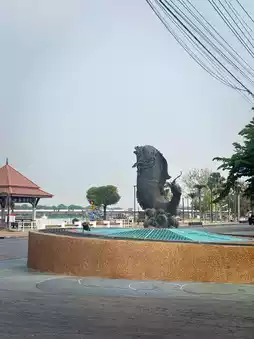 See the fish fountain, a symbol of Kanchanaburi Province, a public park along the river