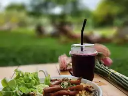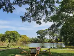 A super chill cafe that anyone who goes to Kanchanaburi must not miss. A cafe surrounded by green trees, shady 🌳 suitable for chilling out, reading a book or chatting with friends. The shop has both indoor and outdoor seating, with many photo spots. The shop's menu has both drinks, bakery and food, the price is not expensive at all. 💕⏰